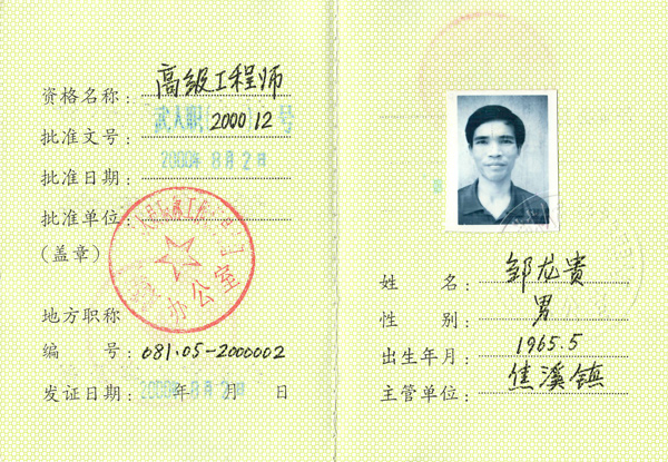 高級(jí)工程師證書(shū)
