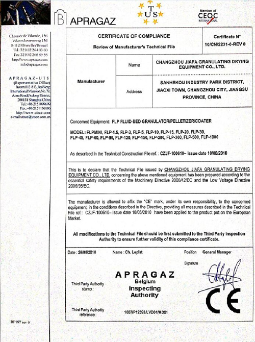 CHANGZHOU JIAFA GRANULATION AND DRYING EQUIPMENT CO., LTD